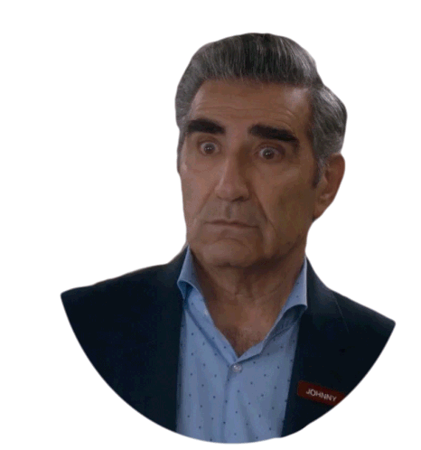 Johnny Rose (Eugene Levy) from Schitt's Creek reacts with a sudden look of surprise and disbelief.