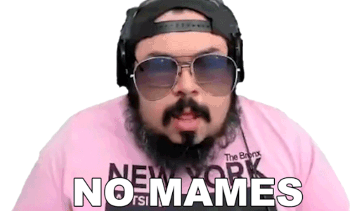 Agbean3r reacts with a surprised or disbelieving expression, wearing sunglasses and headphones, with the text 'NO MAMES' overlaid.