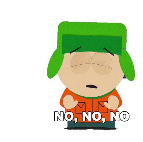 South Park's Kyle Broflovski looks worried and says 'No, No, No' with wide eyes.