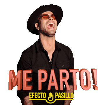 A member of Efecto Pasillo laughs heartily, exclaiming 'Me Parto!' (I'm cracking up!), perfect for expressing extreme amusement.