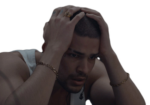 Leo Malasangre (Bernardo Flores) looks distressed, holding his head in his hands, expressing worry and stress.