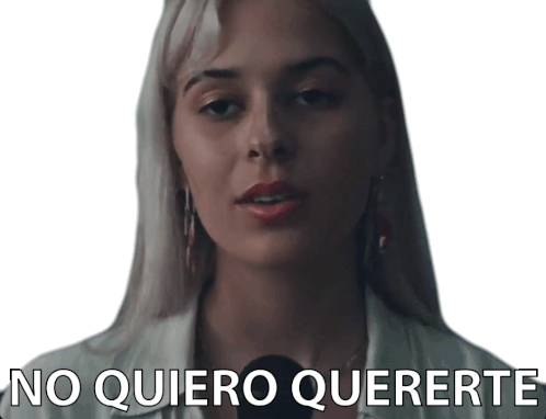 A woman expresses her feelings with the phrase 'No Quiero Quererte' (I Don't Want to Love You), conveying a sense of heartbreak.