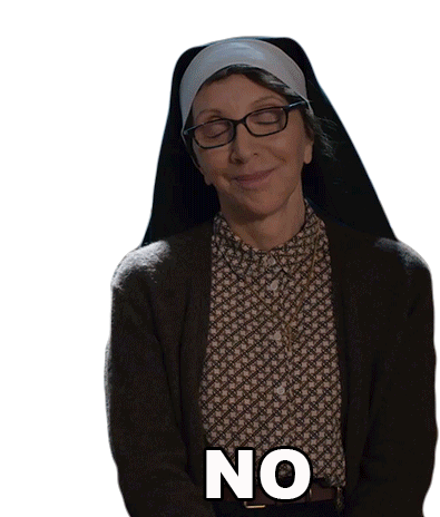 Sister Andrea, a nun from Evil, emphatically says 'NO' with a knowing expression.