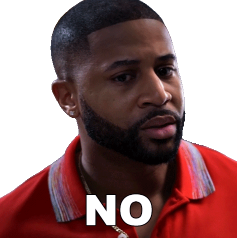 Devale Ellis as Zac from Sistas firmly says 'No', expressing disagreement or refusal with a clear, direct response.
