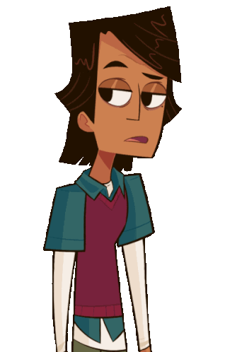 a cartoon character with brown hair and a purple vest
