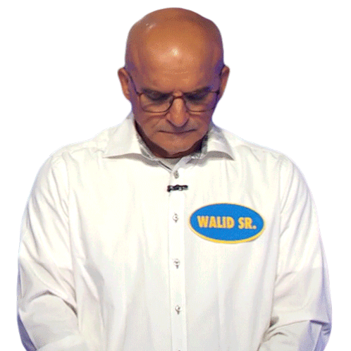 Walid Sr. from Family Feud Canada nods his head in agreement, wearing a white shirt and glasses.