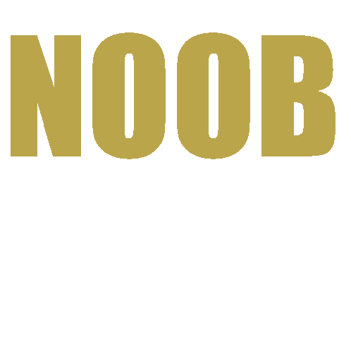a white background with the word noob in gold