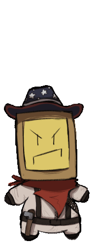 Norm Allen from Dialtown, a cartoon character with a box head and red bandana, jumps with an axe.