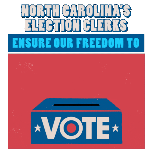 A sticker celebrating North Carolina's election clerks for ensuring the freedom to vote, featuring a hand casting a ballot.