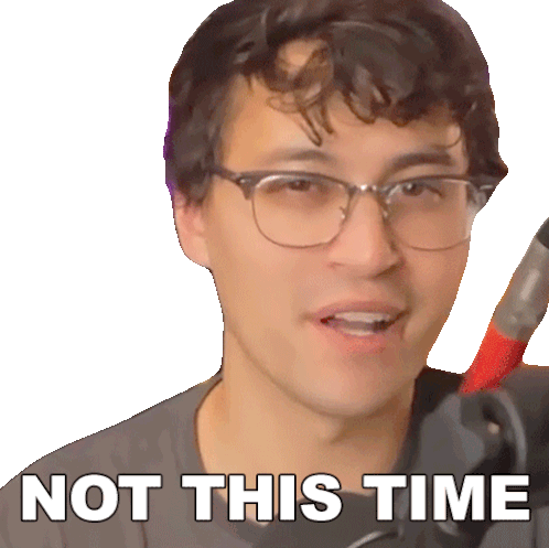 Agufish, wearing glasses, holds a microphone and clearly states 'NOT THIS TIME' with a determined expression.