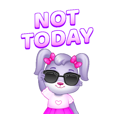 a cartoon bunny wearing sunglasses and a pink shirt says not today