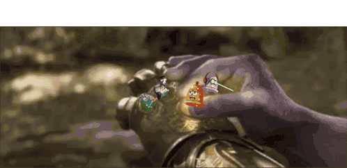 a hand holding a glove with a bunch of cartoon characters on it