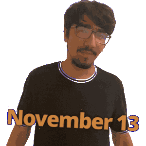 a man wearing glasses is wearing a black shirt that says november 13