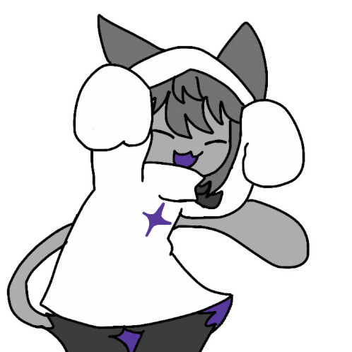 a drawing of a cat wearing a white shirt with a purple star on it .