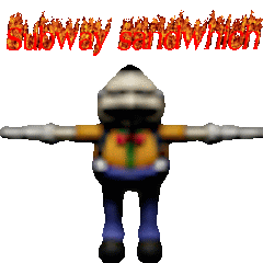 a cartoon character with the words subway sandwich written on it