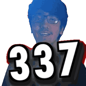a man wearing glasses is smiling and holding up the number 337