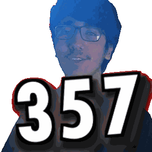 a pixelated image of a man with glasses and the number 357