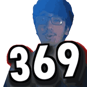 a pixelated image of a man with glasses and the number 369 behind him