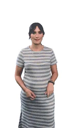 Nuria Castro, the host, smiles and poses confidently in a stylish black off-the-shoulder dress, showcasing her vibrant personality.