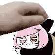 Nyen Ranfren is gently placed atop Nyen Catman by a hand. A cute animated sticker featuring the pink-haired girl and the cat.