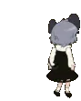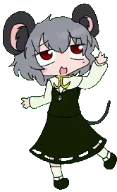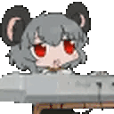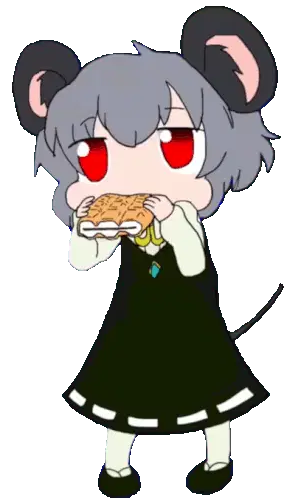Nyn Piano, a cartoon mouse with red eyes, holds a sword, ready for action.