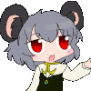 Nyn, a cartoon character with gray hair and intense red eyes, gives an annoyed or serious stare.
