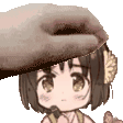 a person is petting a little girl 's head with their hand .