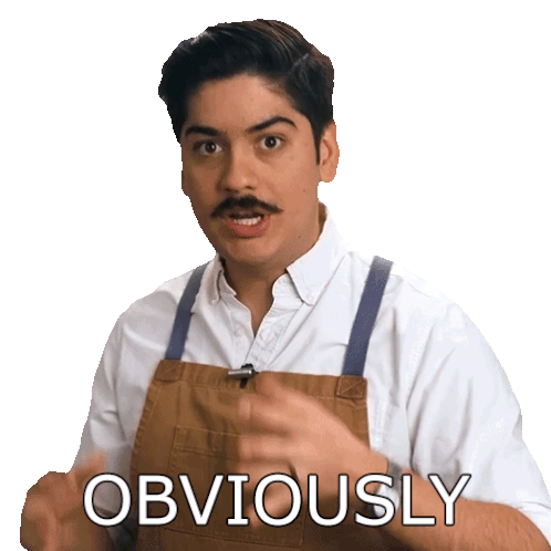 Victor Nevárez, wearing an apron, gestures while saying "OBVIOUSLY" with a confident expression.