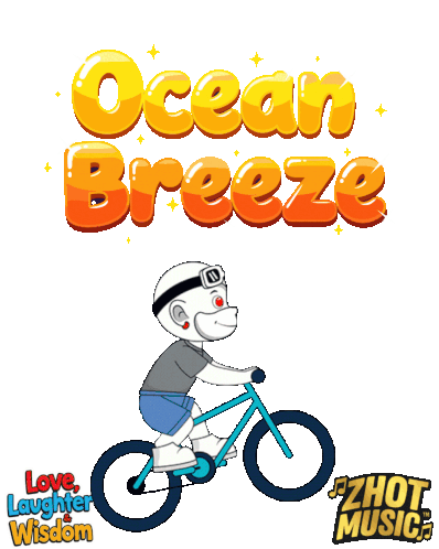 a cartoon drawing of a person riding a bike with the words ocean breeze above them