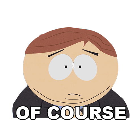 Eric Cartman from South Park expresses a sarcastic 'Of Course' with his signature deadpan expression.
