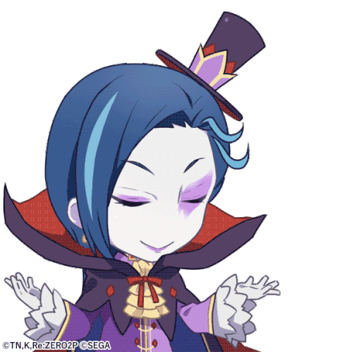 A cute chibi character from Re:Zero expresses "Of course!" with confident gestures and a smug smile.