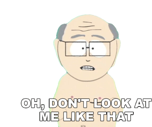 Mr Garrison from South Park, shirtless and wearing glasses, says 'Oh, don't look at me like that' with a worried expression.