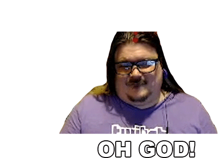 Celticcorpse, a man with glasses and a beard, reacts with a shocked expression, mouth agape, as "OH GOD!" appears.