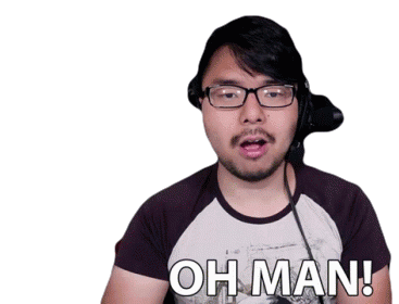 YongYea, wearing glasses and a headset, expresses mild exasperation with the caption 'OH MAN!' on a transparent background.