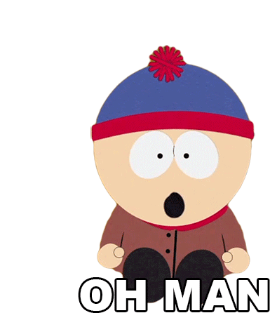 Stan Marsh from South Park reacts with a classic 'Oh Man' expression, showing disappointment or mild shock.