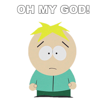 Butters Stotch from South Park reacts with wide-eyed surprise, exclaiming 'OH MY GOD!' in this animated sticker.