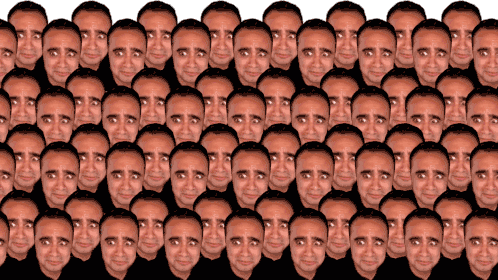 A chaotic animated sticker featuring streamer Squeex's surprised face multiplying and shuffling across the screen in an 'Oh No' meme.