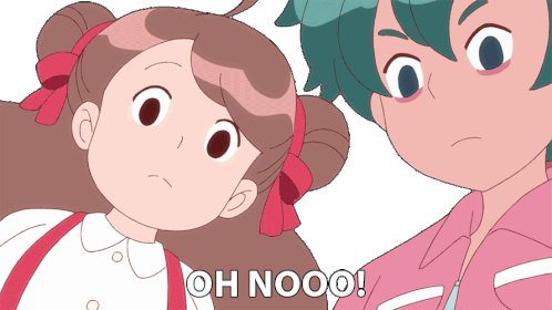 Bee and Crispin Wizard react with surprise as Bee exclaims 'OH NOOO!' in this animated sticker.