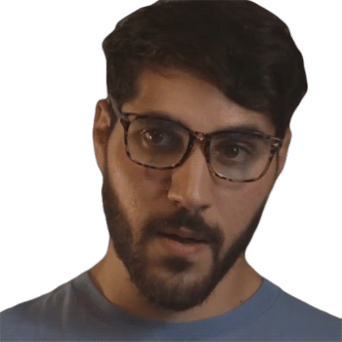 Rudy Ayoub, wearing glasses and a beard, expresses realization with an on-screen 'OH'.