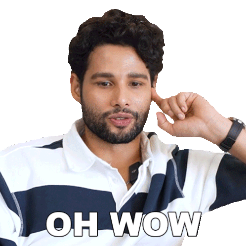 Siddhant Chaturvedi reacts with a surprised "Oh Wow," touching his ear in an expressive gesture.