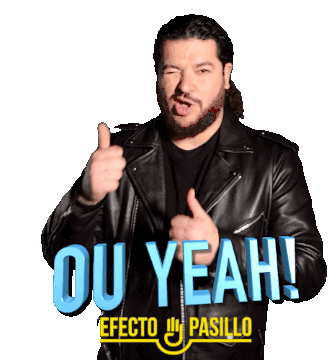 Nau Barreto of Efecto Pasillo gives a thumbs up and winks, exclaiming 'OU YEAH!'.