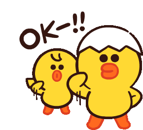 LINE Friends' Sally and a smaller chick enthusiastically give an 'OK' sign, with 'OK-!!' text, showing approval.