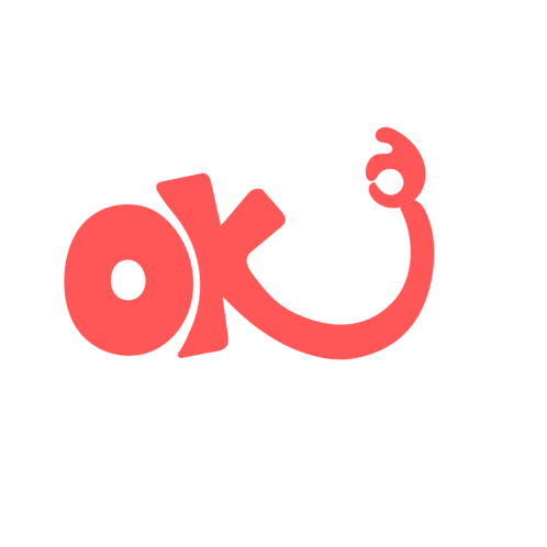 A vibrant red, stylized 'OK' logo with a playful, swirly design, perfect for acknowledging or agreeing.