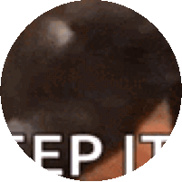 A pixelated close-up of a person's head with the white text 'KEEP IT' visible on a dark background.