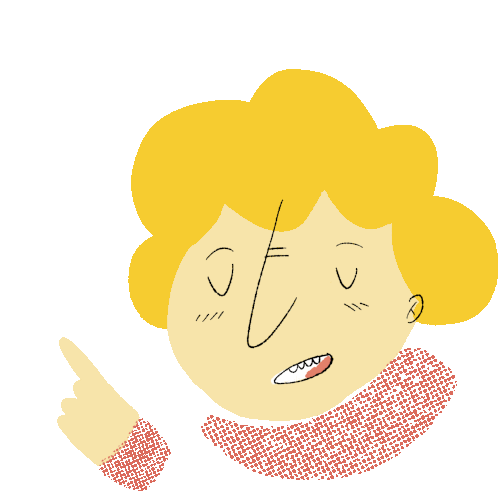 Omar Janaan, a cartoon character with yellow hair and a red sweater, points a finger up to say nope.