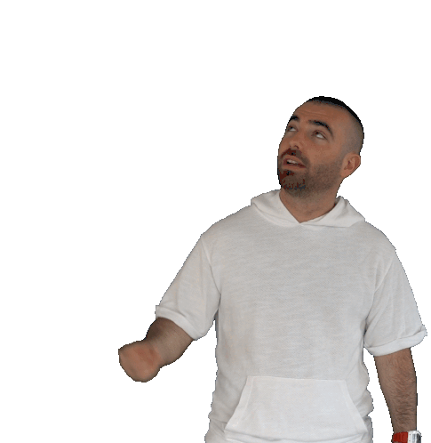 a man in a white shirt is standing in front of a sign that says new post