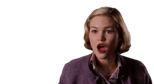 Julia Stiles as Joan Brandwyn from Mona Lisa Smile, looking utterly shocked and surprised with wide eyes and an open mouth.