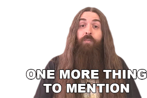 Samus Paulicelli, a man with long hair and a beard, says 'One More Thing To Mention' with a surprised expression.