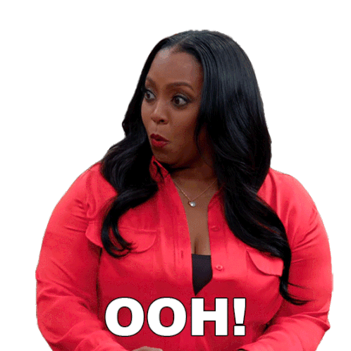 Miranda Lucas, portrayed by Keshia Knight Pulliam, reacts with a surprised 'Ooh!' in a red shirt.