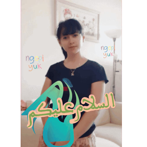 Adel Id and Opah Id invite you for coffee with a warm 'Assalamu Alaikum' greeting. A friendly sticker for daily chats.